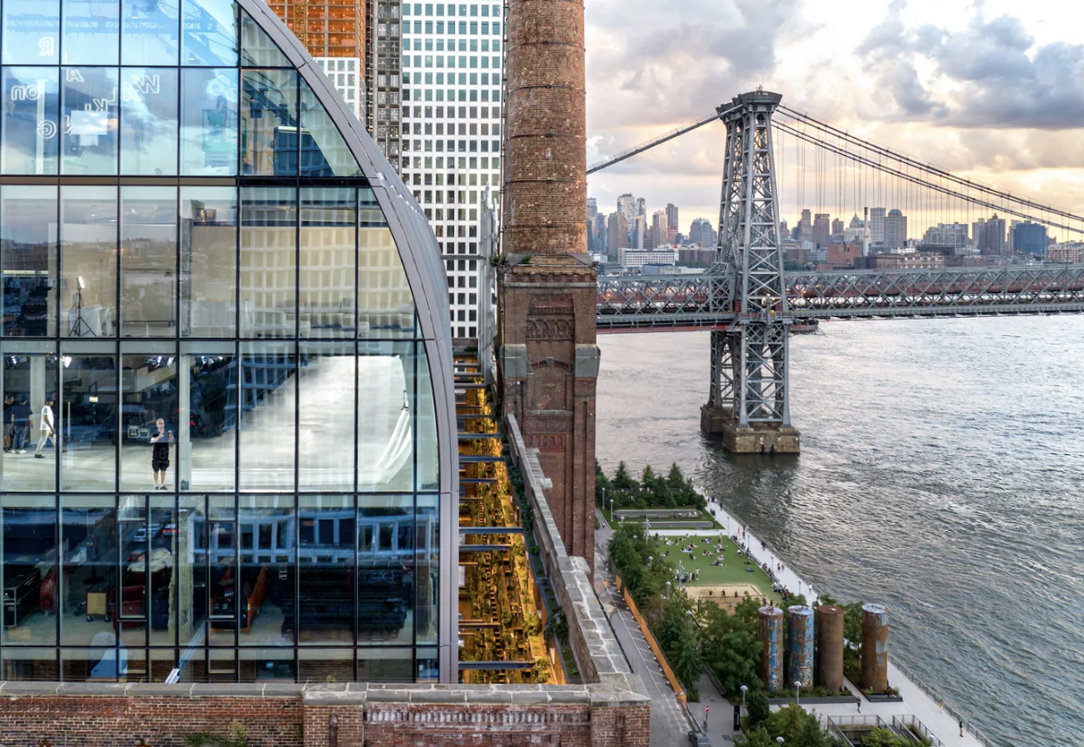 A living landmark on the East River of New York City, 15-story, 460,000-square-foot office building with a unique biophilic twist. Designed by Practice for Architecture and Urbanism with landscaping by Field Operations, the barrel-vaulted glass structure melds history, innovative engineering, and sustainability in an adaptive reuse project for the 21st century.